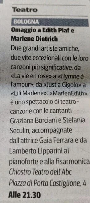 Così è nato “MarlenEdith”, che dal 2018 sta girando nei teatri italiani, riscontrando un enorme consenso dal pubblico di tutte le età.