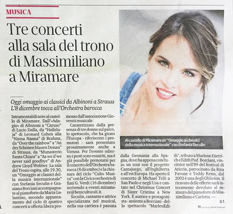 Stefania Seculin è una cantante, attrice e musicista italiana estremamente versatile. Interprete poliedrica, spazia tra vari generi musicali, dal classico al musical, al pop allo swing e alla musica italiana. Dotata di forte presenza scenica e di grande versatilità artistica, ha collezionato numerose esperienze professionali molto diverse tra loro, esibendosi in teatri importanti sia in Italia che all’estero. La sua generosità e le sue interpretazioni riescono a conquistare tutte le fasce di pubblico, emozionando lo spettatore che incontra …
